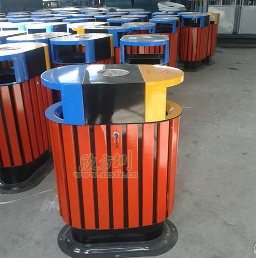 鋼材料上,鋼件為選用符合標(biāo)準(zhǔn)之鋼管、鋼板等材料,除油、酸洗除銹、磷化加工等表面處理后靜電粉沫噴涂。并經(jīng)180-250℃高溫下烘烤超過60分鐘,表面附著力強(qiáng),光澤好,能防銹、防紫外線、耐沖擊,更能耐酸、堿腐蝕,易清潔。特殊要求可采用電溶鍍鋅處理后再噴涂戶外粉末。適宜戶外環(huán)境,長久使用。欣方圳垃圾桶廠家在鋼木垃圾桶的制作工藝中能夠?qū)⒛静暮弯摬倪M(jìn)行完美的接合,只有這樣的鋼木垃圾桶才能耐用,適用于戶外各種環(huán)境。
